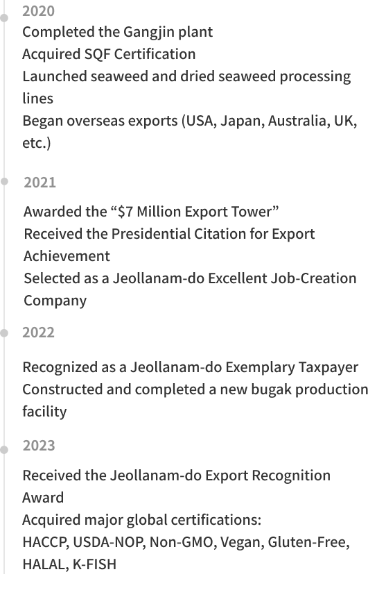 As a specialized seaweed company rooted in the rich coastal waters of Korea,